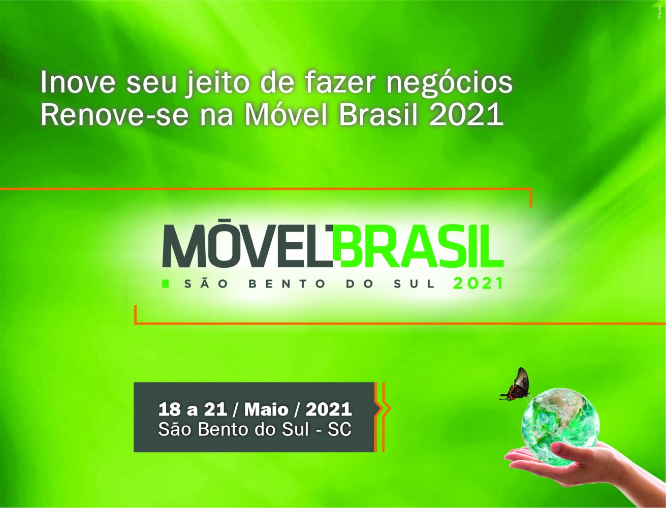 A comunicação faz ainda referência à saúde das pessoas e do planeta, à renovação e à sustentabilidade, como característica marcante e diferenciada do polo moveleiro. A Móvel Brasil acontecerá entre 18 e 21 de maio de 2021, no Centro de Eventos Promosul. Atualmente a organização trabalha na prospecção e confirmação de expositores, com o objetivo de reunir mais de 100 marcas de móveis e decorações.